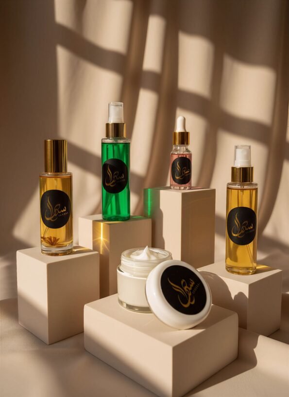 A captivating display of Sahara’s signature collection — elegant perfumes and silky body creams arranged with style. Each fragrance is crafted to embody sophistication for both men and women, while the nourishing lotions complete the experience with a touch of luxury. Sahara blends timeless scents with modern elegance, creating a perfect harmony between beauty and care